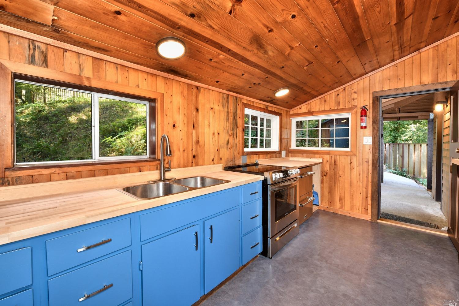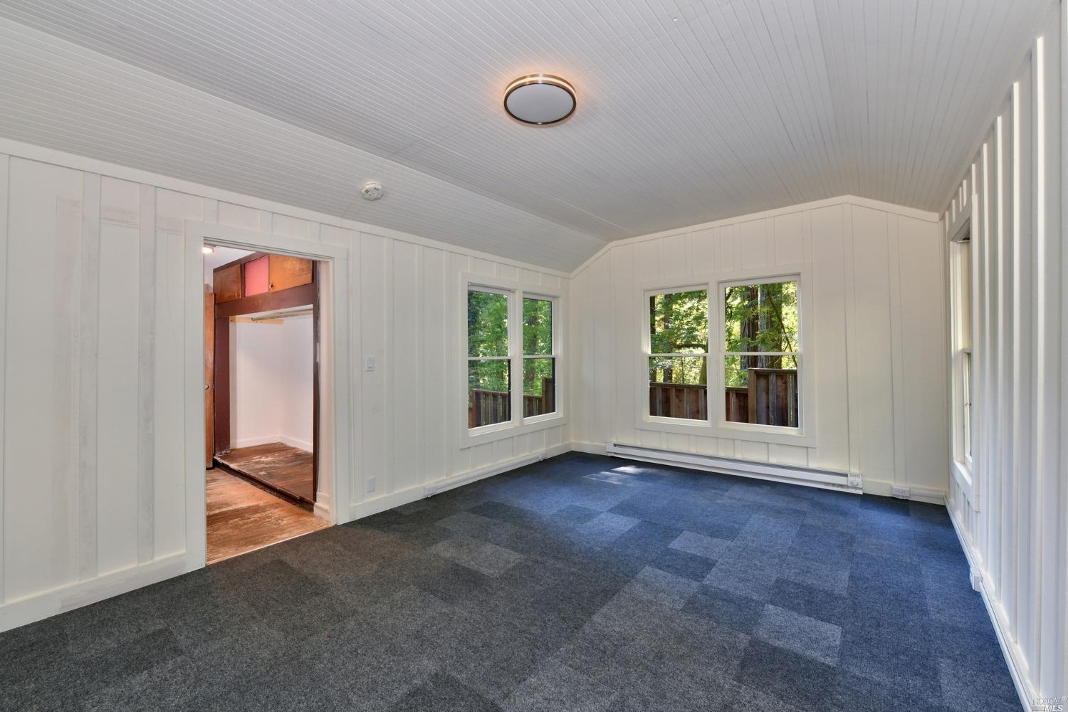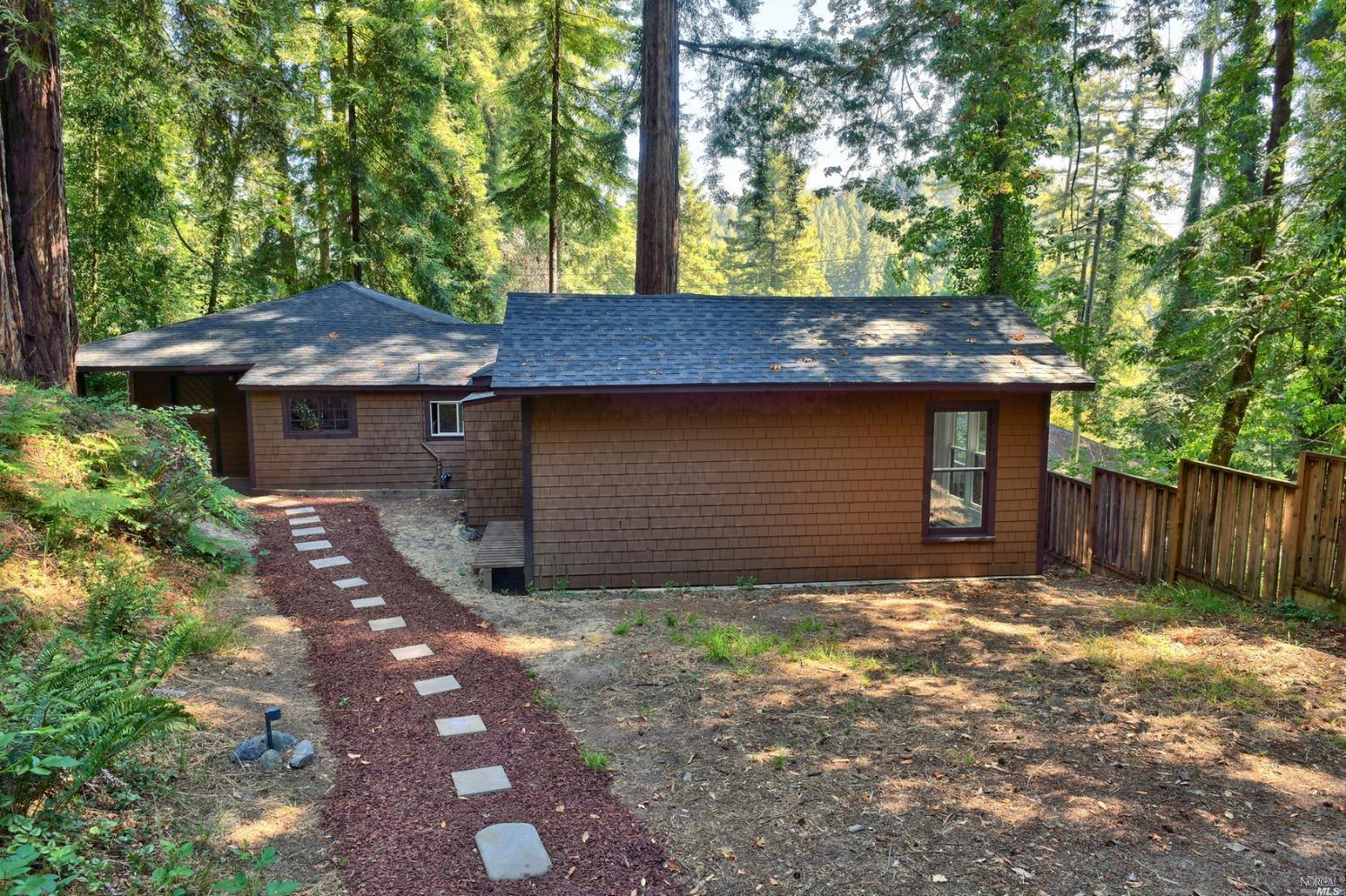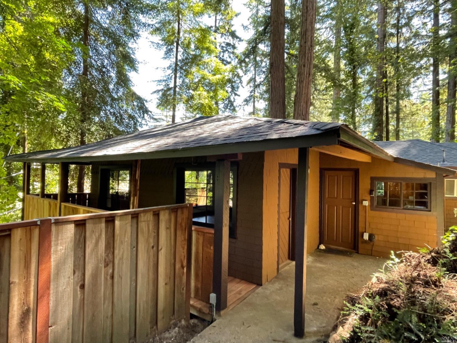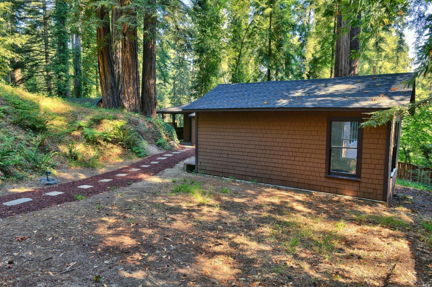 Charming, one-of-a kind house on a private .2 acre lot amid mature Redwoods with tons of windows and natural light. The home is bright and unique and although it is officially a 1 bedroom, it lives like a 2 bedroom with two possible sleeping areas. The home also offers something few places in Camp Meeker have – privacy and off-street parking in a detached carport. The bedroom is large with new carpet and paint. There is a small wooden shed for laundry and plenty of outdoor lighting. Recent upgrades include: new composite roof, appliances, water heater, redwood deck, fencing and fresh interior and exterior paint. Come and relax on your beautiful new deck among the towering redwoods, sitting high on the hill with privacy, but also close to the adorable town of Occidental, the Russian River and Sonoma Coast. Please note, the property is accessed from California street, not Railroad, Don’t use GPS.