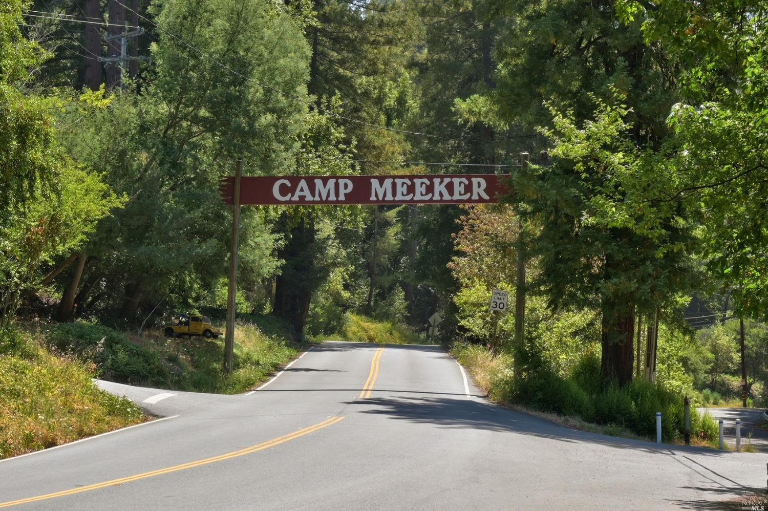 Entrance into quaint Camp Meeker on Bohemian Hwy